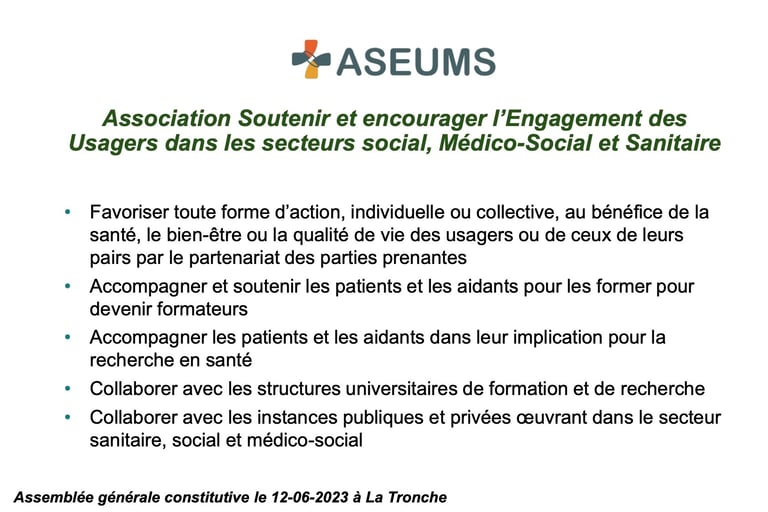 Association Soutenir et encourager l’Engagement des Usagers dans les secteurs social, Médico-Social et Sanitaire, ASEUMS