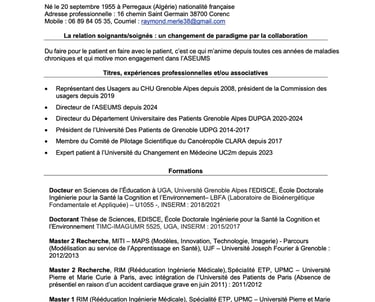 Directeur de l’ASEUMS Association Soutenir et Encourager les Usagers Sect. Social Médico soc et sanit Membre d’honneur e ancien directeur du Département Universitaire des PatientsGrenoble Alpes DUPGA